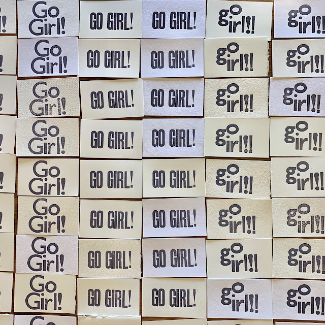 One of the things I like about my other Go Girl! work is the wood type - the honesty of it and the history of it being there in its marks, so I wanted to continue to use wood type if I could. But of course, getting type and exclamation marks small enough to print on business cards was always going to be fun.