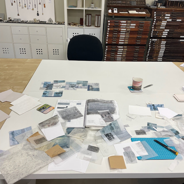 This is my work desk as I beavered away during the week. It has been stinking hot and steamy here, so despite my best efforts to stay cool, I had to have the air-conditioning on. And what a hoot that turned out to be as all my light as a feather Japanese papers went flying and drifting all over the place. I had to keep checking my bins as so many fragments ended up in there... but I persisted!